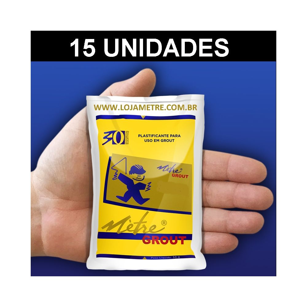 Mètre® Grout é misturado nos traços de (concretos e grautes) usando 1 saco de 50 gramas para cada saco de 50 kilos de cimento Portland, junto com areia grossa, pedrisco ou pedras e água.